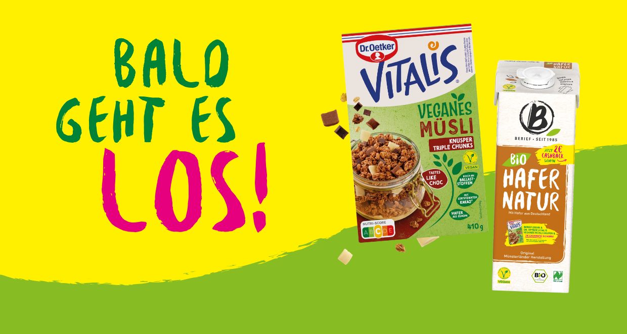 Es nehmen Berief Drinks sowie Dr. Oetker Vitalis Veganes Müsli an der Aktion teil. Bitte beachte, dass gegebenenfalls nicht immer alle Artikel in jedem Markt und zu jeder Zeit verfügbar sind.